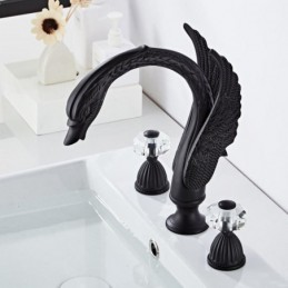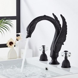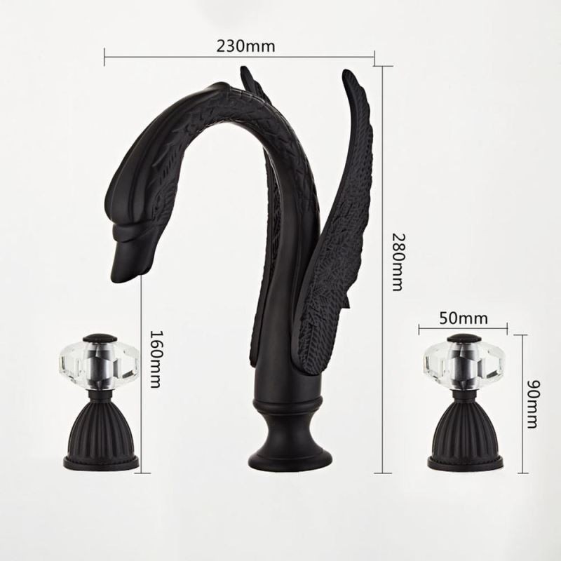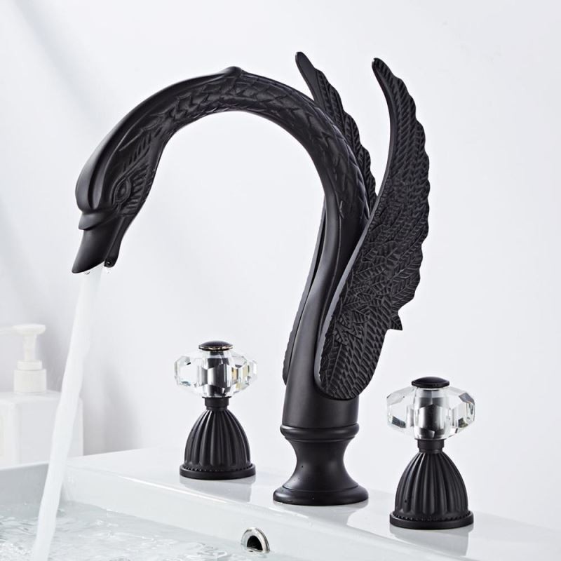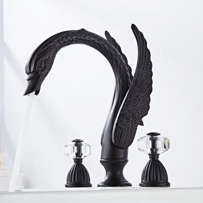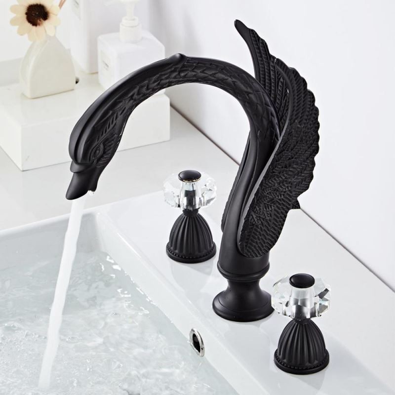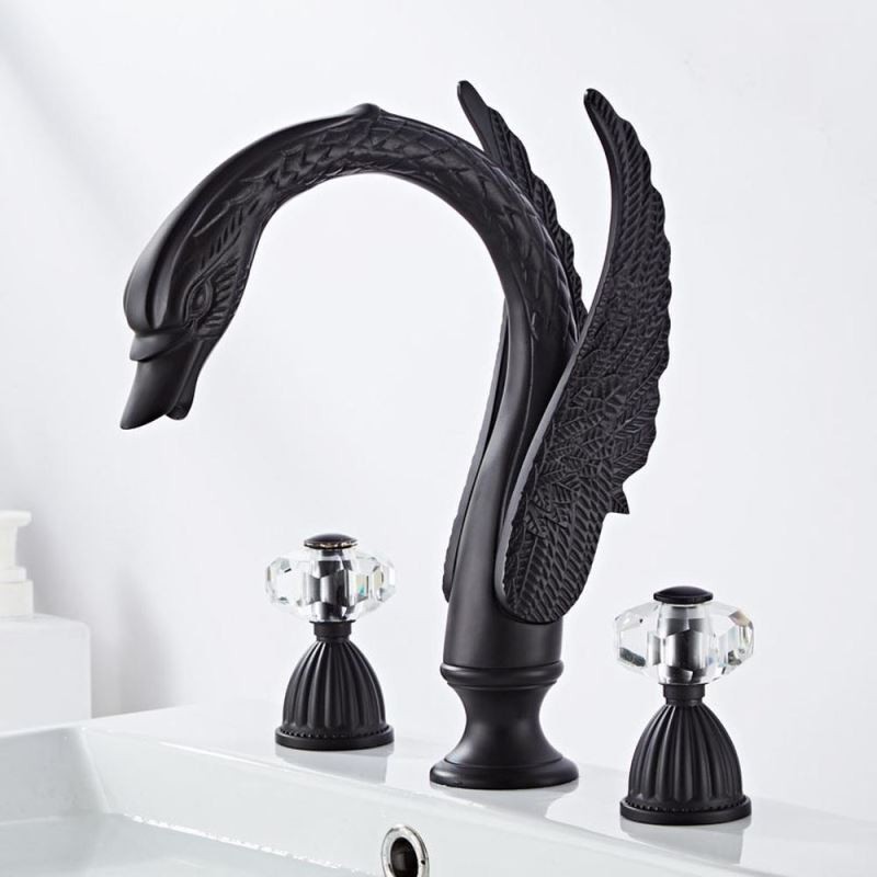 Designer Elegant Swan Shape 3pcs Widespread Bathroom Sink Tap with 2 Handles Vanity Basin Mixer Tap