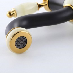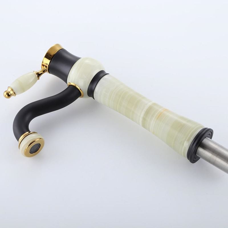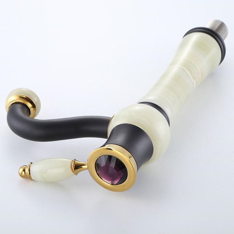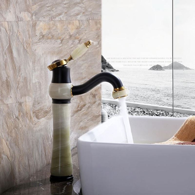 Designer Elegant Luxury Solid Brass Jade Stone Bathroom Sink Tap Basin Vanity Mixer Tap