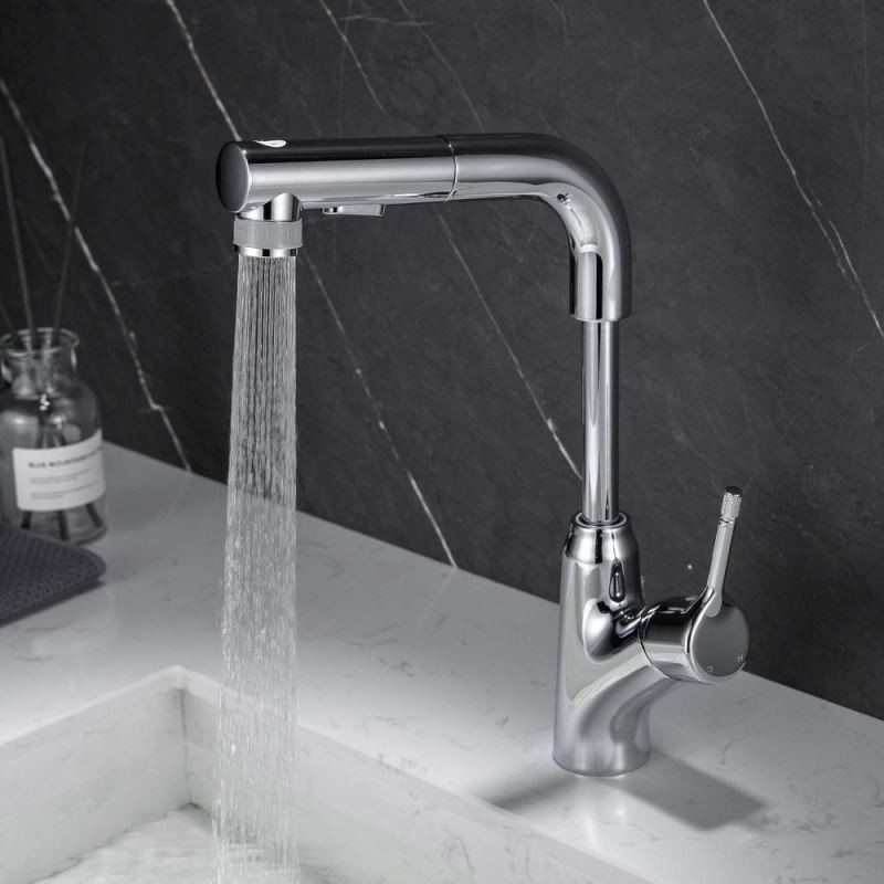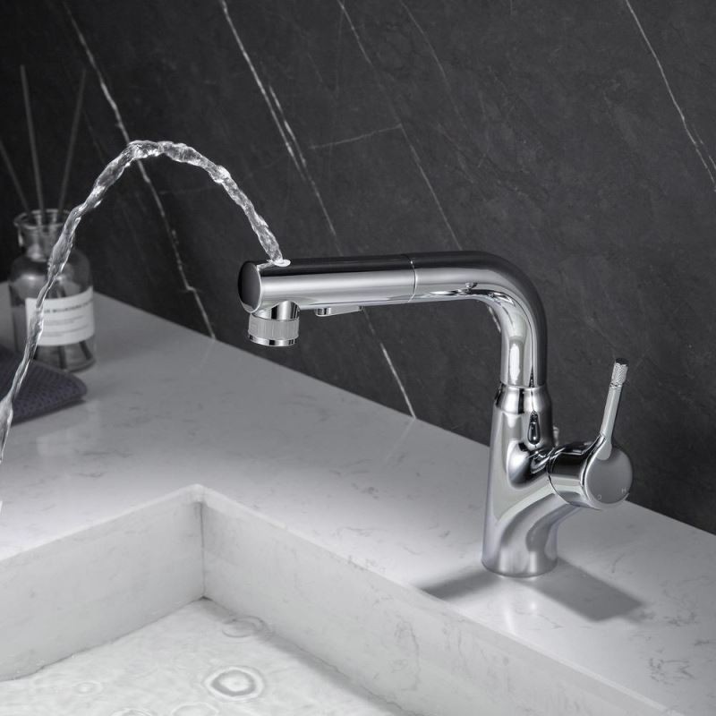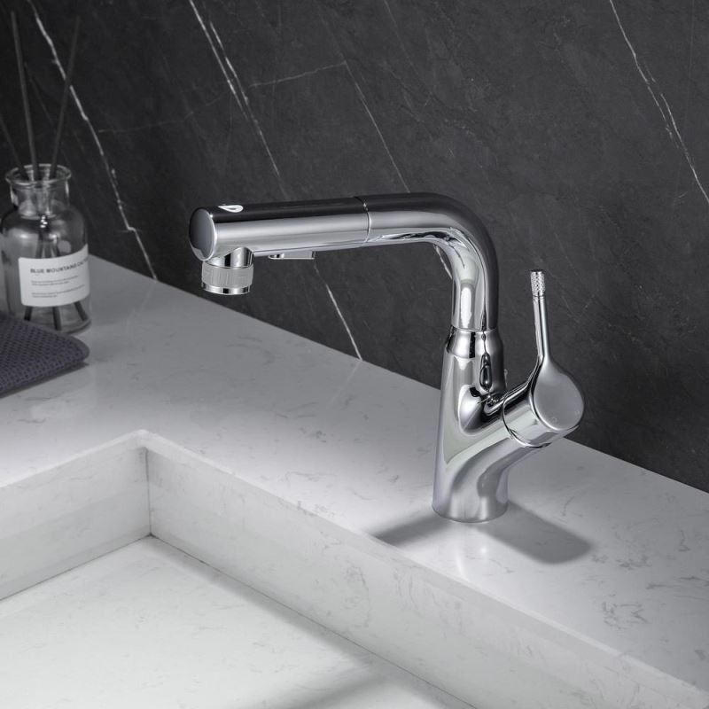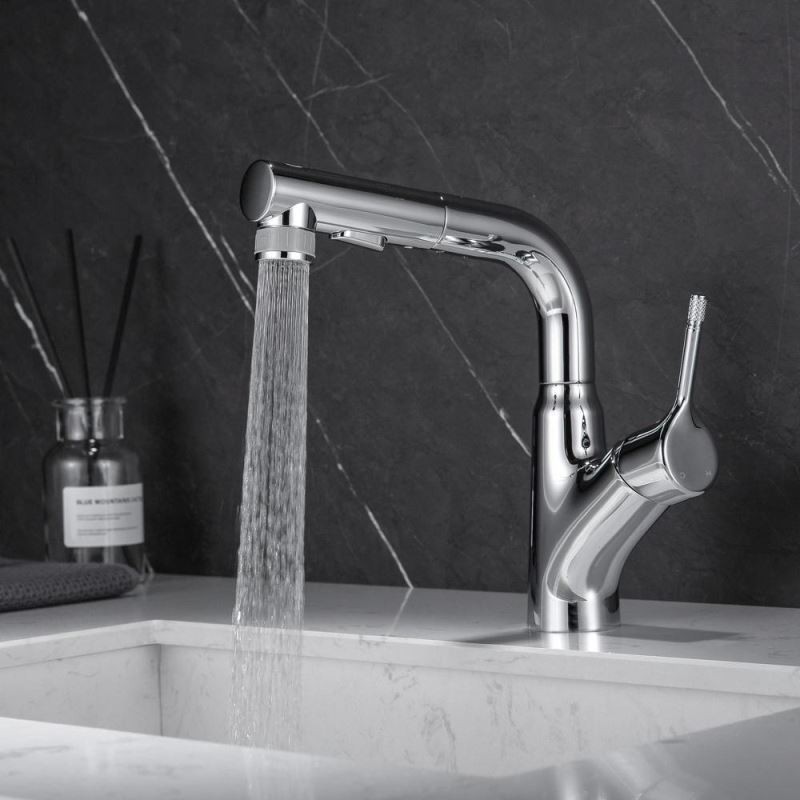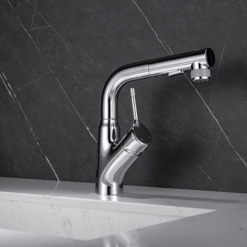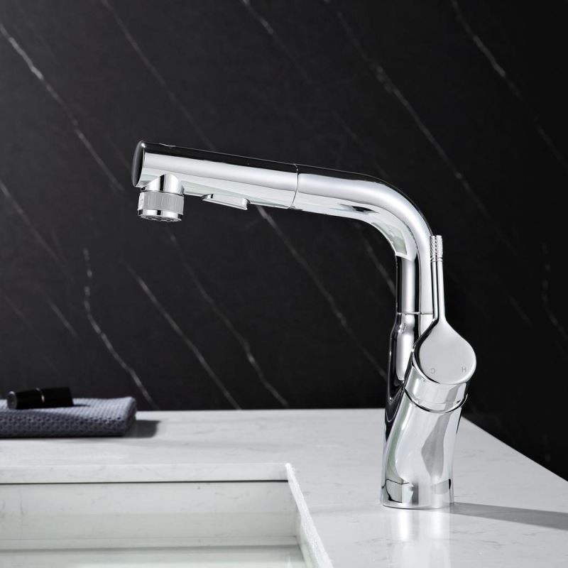 Designer Elegant Chrome Basin Mixer Tap with Pull-Out and Liftable Bathroom Tap