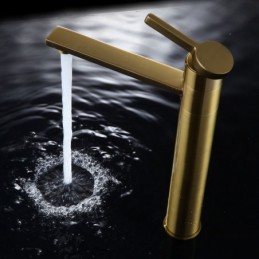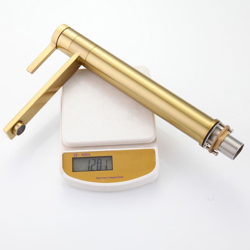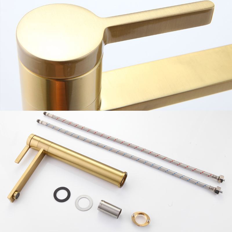 Designer Elegant Brushed Gold Brass Basin Tap Mixer with 360° Rotatable Spout for Bathroom Sink