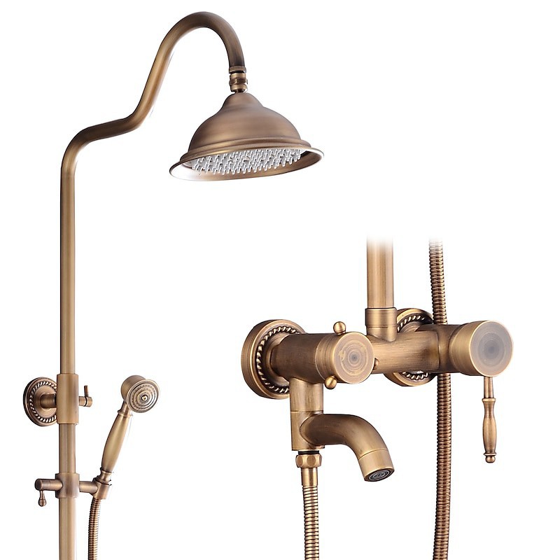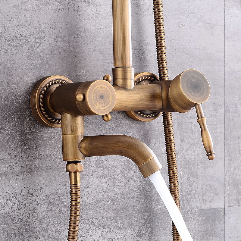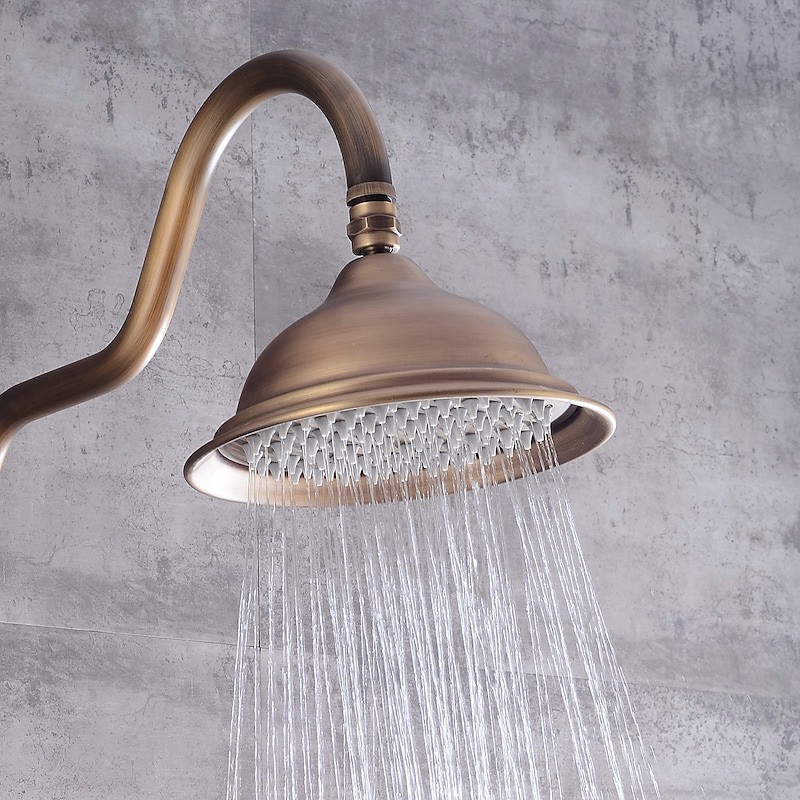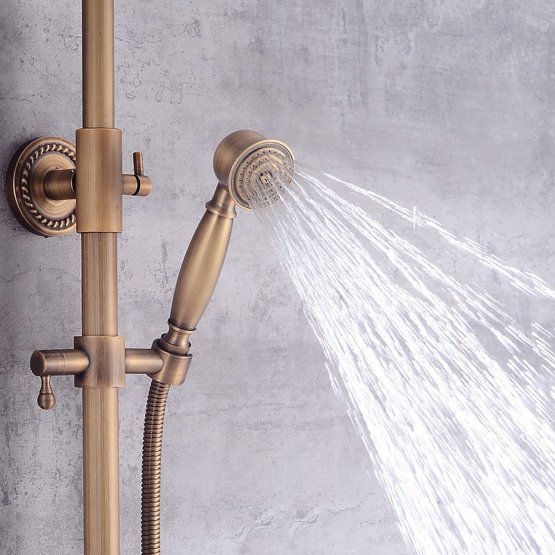 Style:Vintage Style,Country,Features:Waterfall,Multi Spray Shower,Rainfall Shower,pullout,Handshower Included,Faucet Type:Rainfall Shower Head System,Shower System,Shower Faucet,Installation Type:Mount Outside,Cold and Hot Switch:Yes,Valve Type:Ceramic Valve,Finish:Antique Brass,Special selected products:COD,