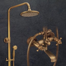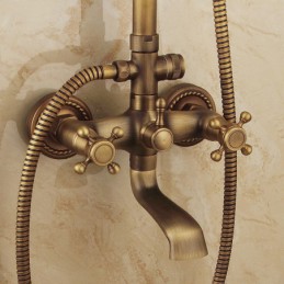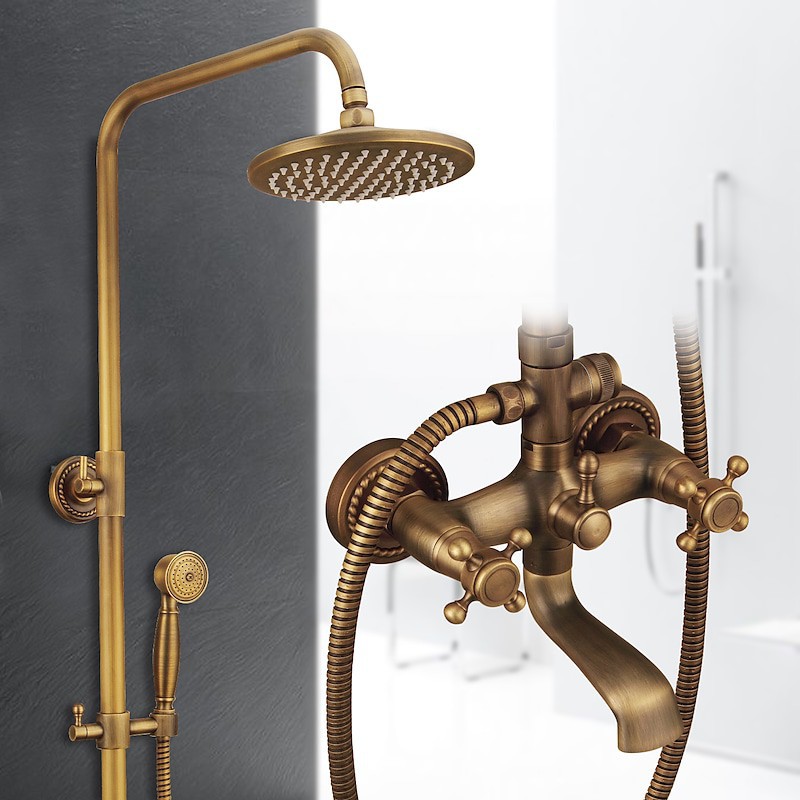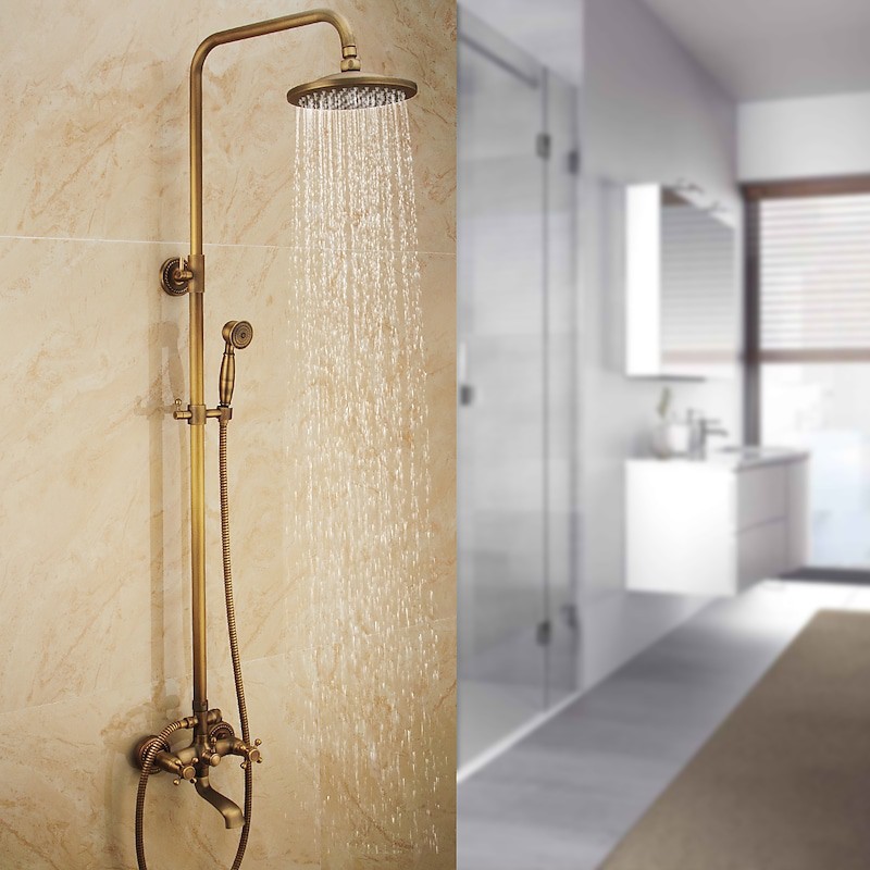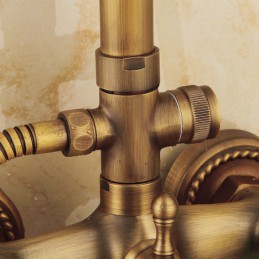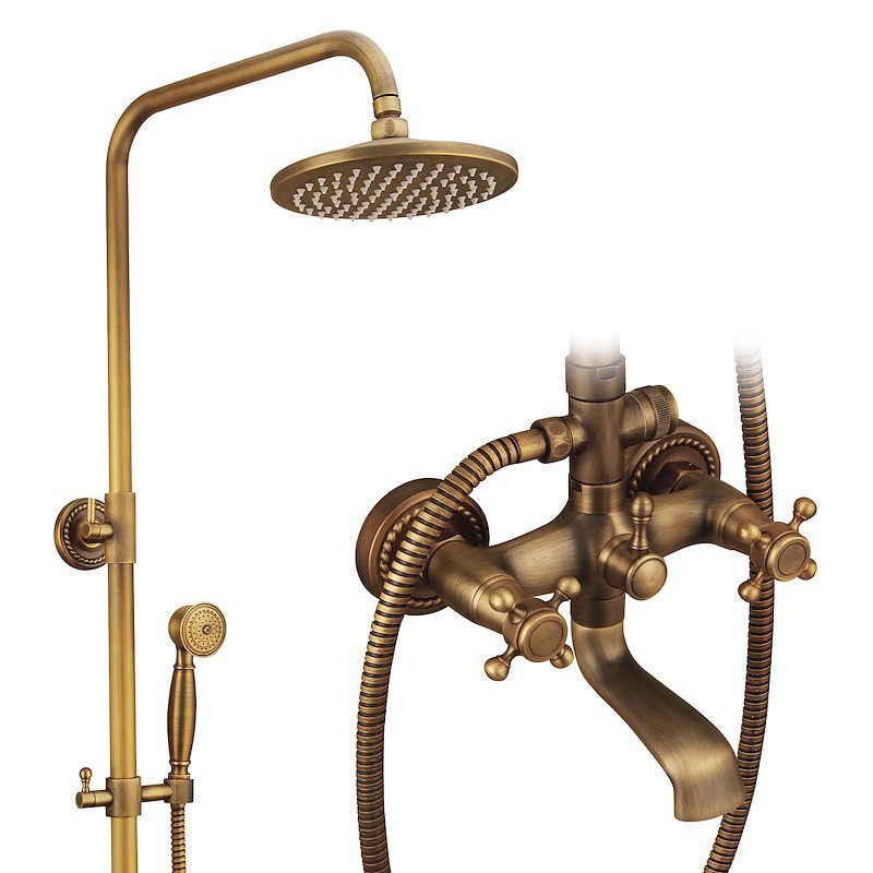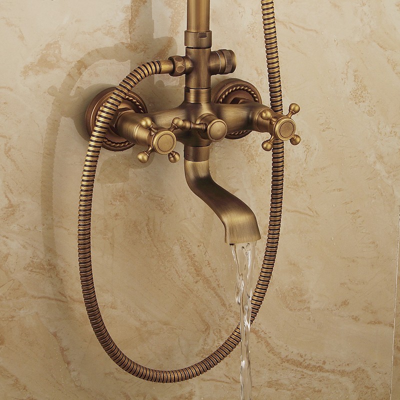 Style:Vintage Style,Country,Features:pullout,Handshower Included,Waterfall,Faucet Type:Shower System,Installation Type:Mount Outside,Cold and Hot Switch:Yes,Valve Type:Ceramic Valve,Finish:Antique Brass,