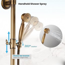 Style:Vintage Style,Country,Features:pullout,Handshower Included,Waterfall,Faucet Type:Shower System,Installation Type:Mount Outside,Cold and Hot Switch:Yes,Valve Type:Ceramic Valve,Finish:Antique Brass,Special selected products:COD,