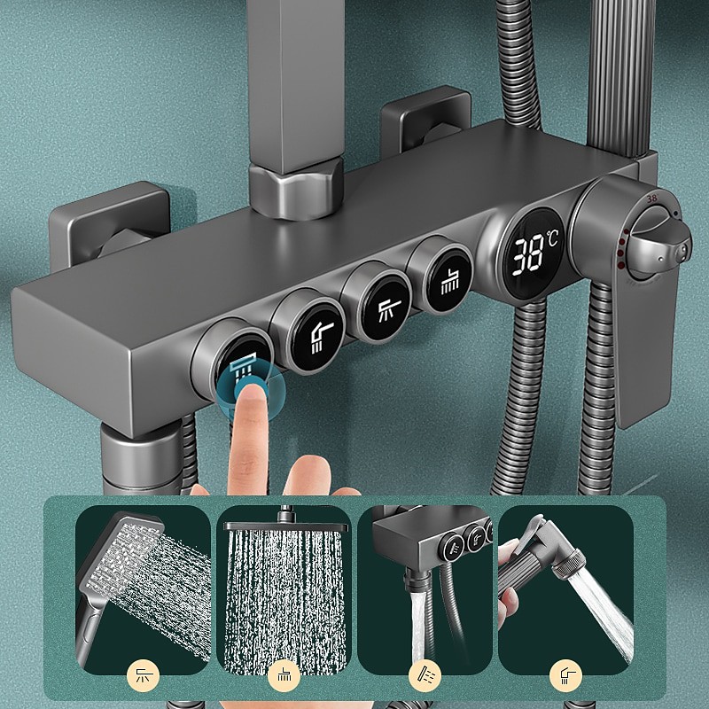 Style:Country,Contemporary,Features:Multi Spray Shower,Rainfall Shower,Dual-Head,Handshower Included,Waterfall,Faucet Type:Premium High Pressure Dual Shower,Body Jet Massage,Thermostatic Mixer valve,Rainfall Shower Head System,Shower System,Installation Type:Mount Inside,Cold and Hot Switch:Yes,Valve Type:Ceramic Valve,Finish:Painted Finishes,Water Pressure (Mpa):0.5-1,