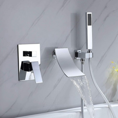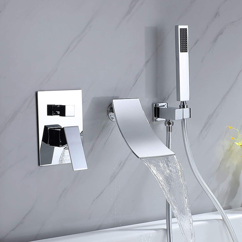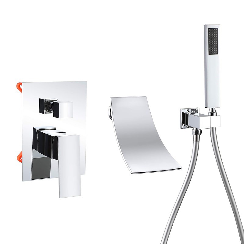 Style:Contemporary,Features:Handshower Included,Waterfall,Faucet Type:Shower Faucet,Shower System,Installation Type:Mount Inside,Number Of Handles:Single Handle,Flow Rate (L/min):9,Cold and Hot Switch:Yes,Valve Type:Ceramic Valve,Finish:Chrome,Water Pressure (Mpa):1,Installation Holes and Handles:Single Handle Three Holes,