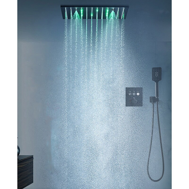 Style:Contemporary,Features:Multi Spray Shower,Fixed Mount,LED,Handshower Included,Faucet Type:Shower Faucet,Rainfall Shower Head System,Shower System,Installation Type:Mount Inside,Valve Type:Ceramic Valve,Finish:Electroplated,