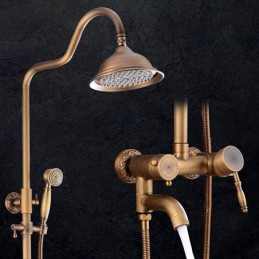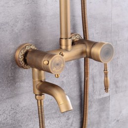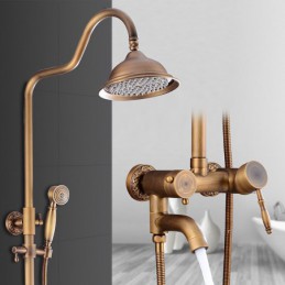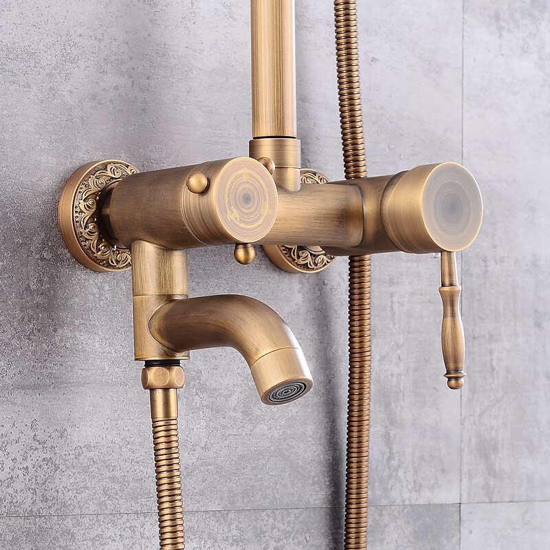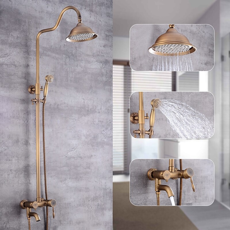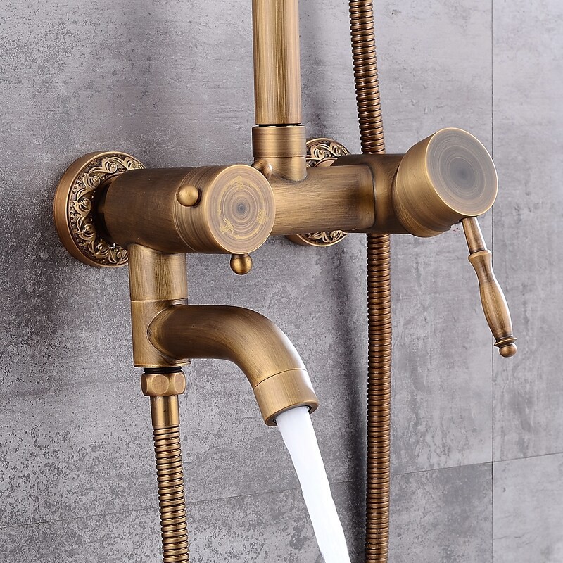 Style:Vintage Style,Country,Features:pullout,Handshower Included,Waterfall,Faucet Type:Shower System,Installation Type:Mount Inside,Cold and Hot Switch:Yes,Valve Type:Ceramic Valve,Finish:Antique Brass,