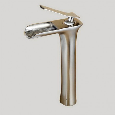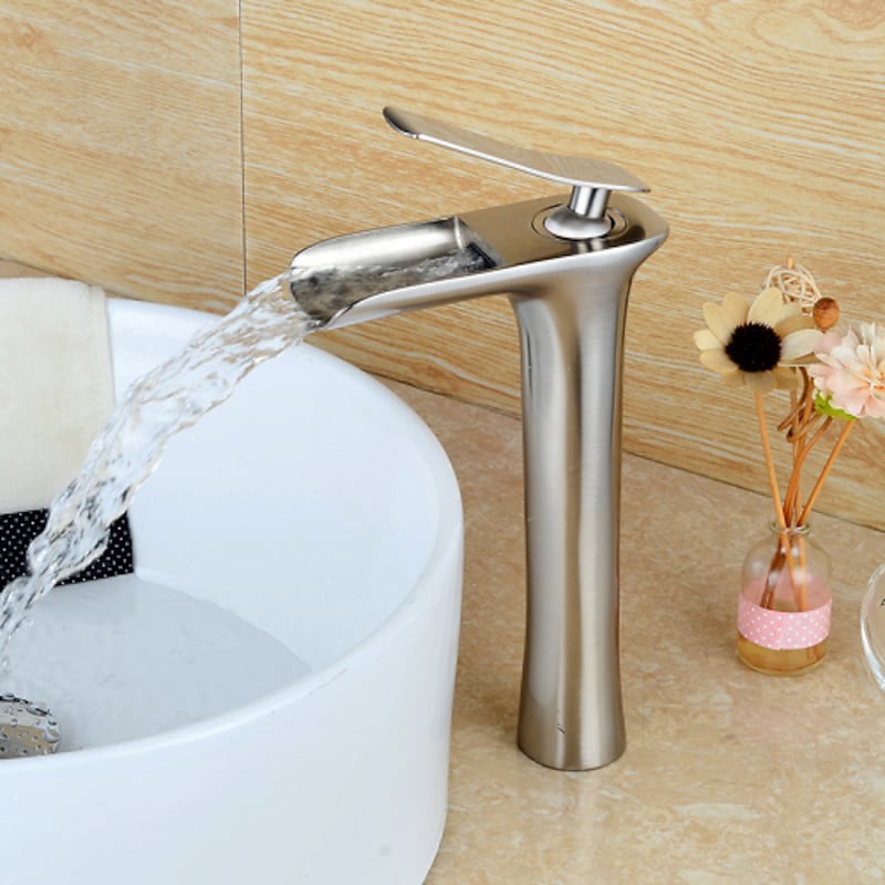 Style:Contemporary,Features:Waterfall,Faucet Type:Bathroom Sink Faucet,Installation Type:Vessel,Number Of Handles:Single Handle,Cold and Hot Switch:Yes,Valve Type:Ceramic Valve,Finish:Nickel Brushed,Installation Holes and Handles:Single Handle One Hole,
