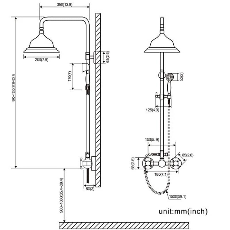 Overall Height (cm):77cm*41cm*15cm(30"*16"*5.9"£©,Showerhead Width (cm):20.5cm x 20.5cm x 1cm (8 "x 8"x 0.394 "),
